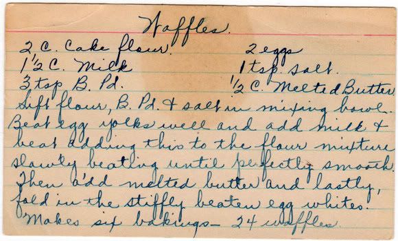 The recipes on this site are either shown in Grandma's handwriting or typed EXACTLY as she wrote them. Only recipes that she wrote by hand or had written-on are included in this collection. This is due to sheer volume, as she had 100's of recipes, both clipped from newspapers, magazines, off of packaging, etc. and handwritten. I've found recipes written on deposit slips, receipts for furniture, envelopes, church service programs, etc. Often times the recipes weren't written in their entirety, and instead of assuming what was missing, they are printed here without that information. If anything was added it will be shown in [ ]. To view only the recipes shown in her handwriting, click here.