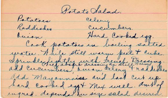 The recipes on this site are either shown in Grandma's handwriting or typed EXACTLY as she wrote them. Only recipes that she wrote by hand or had written-on are included in this collection. This is due to sheer volume, as she had 100's of recipes, both clipped from newspapers, magazines, off of packaging, etc. and handwritten. I've found recipes written on deposit slips, receipts for furniture, envelopes, church service programs, etc. Often times the recipes weren't written in their entirety, and instead of assuming what was missing, they are printed here without that information. If anything was added it will be shown in [ ]. To view only the recipes shown in her handwriting, click here.